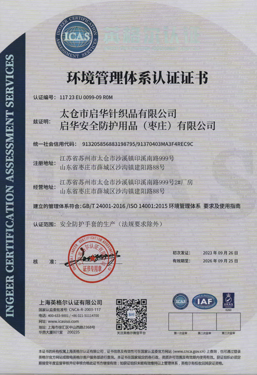 環境管理體系認證證書